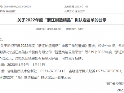 浙江省经济和信息化厅于2023年1月9日公示了2022年度“浙江制造精品”拟认定名单,k1体育股份有限公司“第五代移动警务终端P99